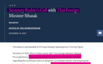 On December 18, the United States disclosed a call between Secretary of State Marco Rubio and Thailand’s Foreign Minister Sihasak Phuangketkeow. The wording matters. Washington said it was concerned about …
