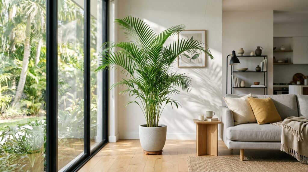 To keep an Areca Palm healthy, place it in bright, indirect light and water it regularly to keep the soil slightly moist—but not soggy. It enjoys a consistent environment and doesn’t like to dry out completely.